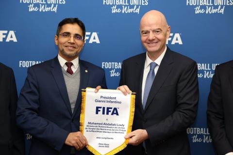 وأوضحت الوزارة في منشور على فيسبوك أن اللقاء كان مناسبة لتبادل وجهات النظر حول الشراكة القائمة بين الوزارة والاتحاد الدولي لكرة القدم والاتحادية الموريتانية لكرة القدم، ولا سيما فيما يتعلق بتعزيز وتطوير البنى التحتية الرياضية.